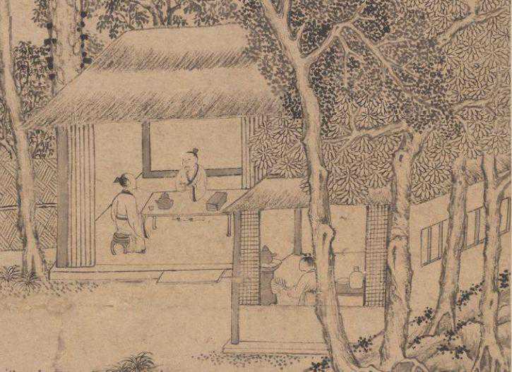(传)唐阎立本《萧逸赚兰亭图》中的煎茶部分