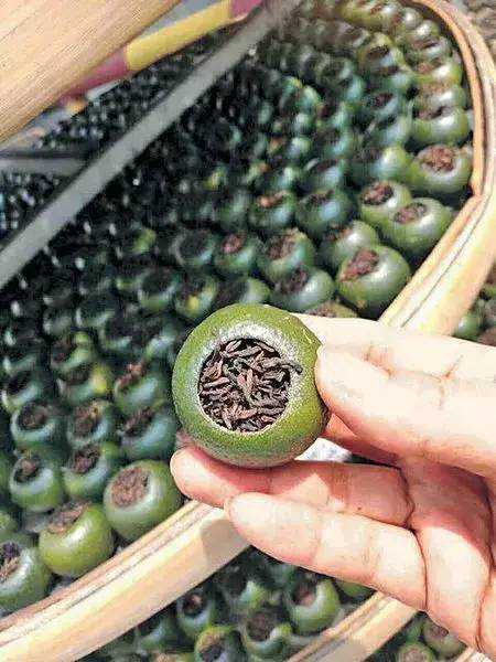 这里的柑,除了可以经过在三年以上的陈化,产出优质陈皮。新鲜的柑还可以和茶叶融合搭配,制作成小青柑茶。