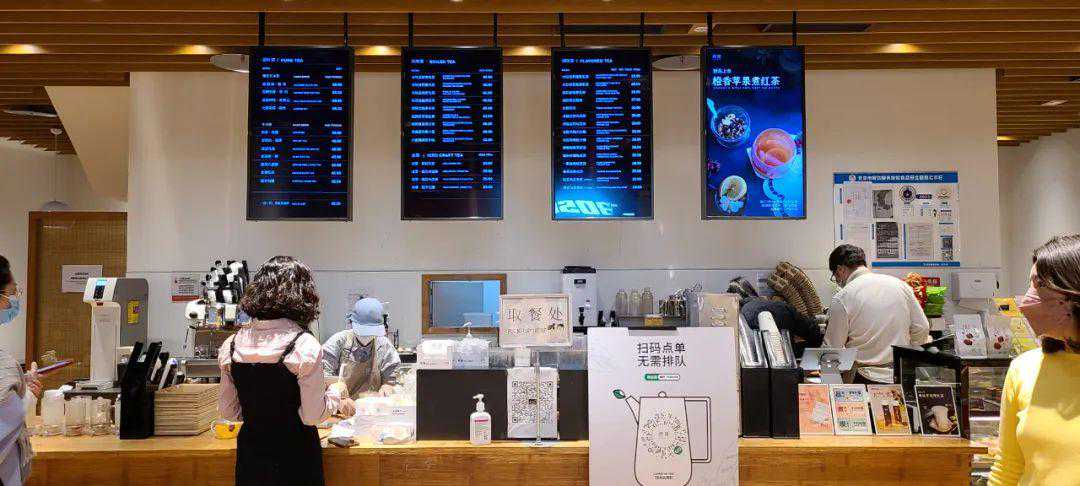 内参君蹲点了煮葉国贸店,周二下午的3-4点,300平米的大店中座无虚席,甚至出现了等位的情况。从下单到取餐,整个过程并没有想象中的迅速,几平米的前台挤着6个点单、出品员工,显得有些忙乱,甚至需要顾客去自助服务。