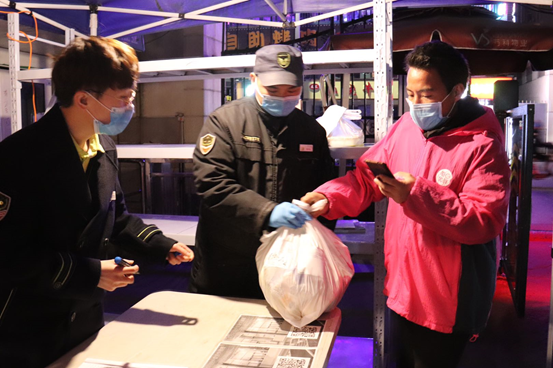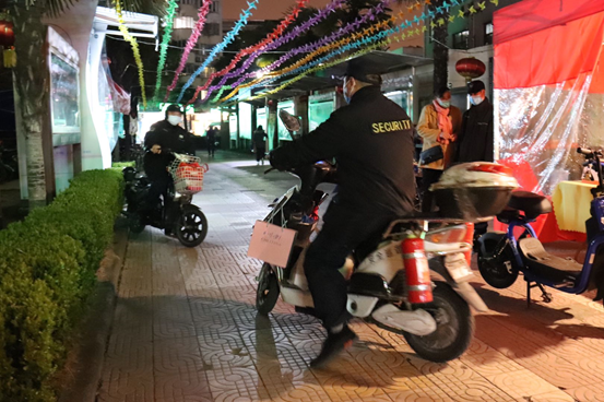 巡逻保安正充当“摆渡人”将快递从存放点送至居民楼。