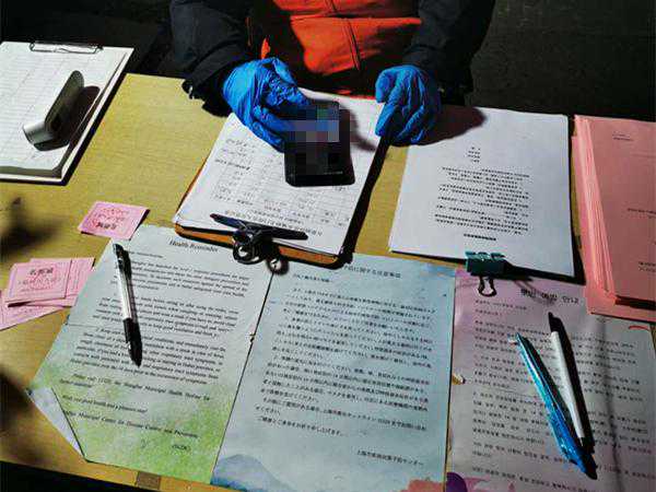 面前的桌子上摆着登记表,还特意贴了日语、韩语、英语三种语言的告示。