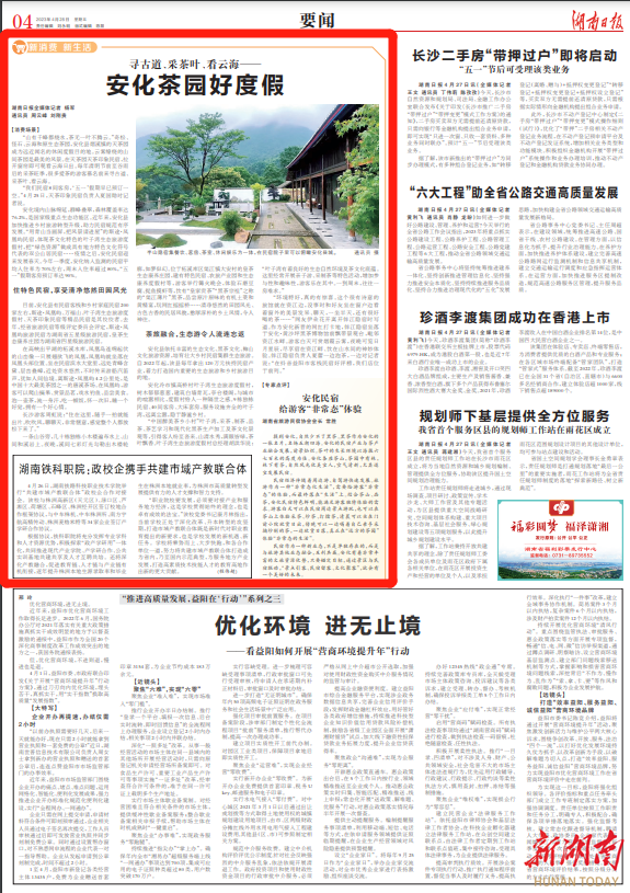 安化境内山脉绵延,群峰叠翠,森林覆盖率达76.2%,是国家级重点生态功能区。近年来,安化县加快推进乡村旅游转型升级,助力民宿规范有序发展。“用青山当画屏,把风景请进屋”的斯途·凤凰屿民宿,体现茶文化特色的叶子湾生态旅游度假村,把“绿色资源”做成具有地方特色文化符号代表的双公山居民宿……疫情之后,安化民宿迎来发展春天。今年一季度,安化纳入监测的民宿平均入住率为70%左右,周末入住率超过80%,“五一”假期客房预订率达90%。
