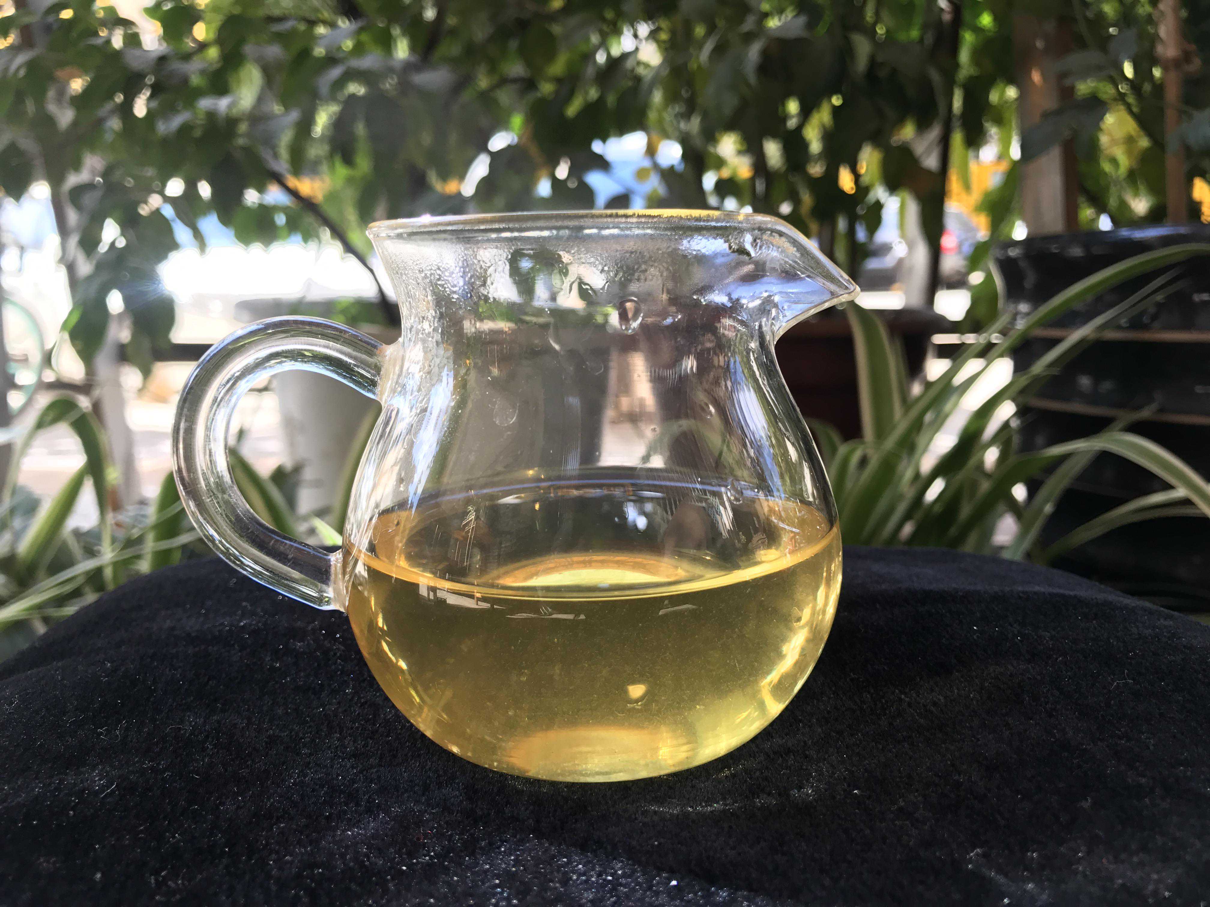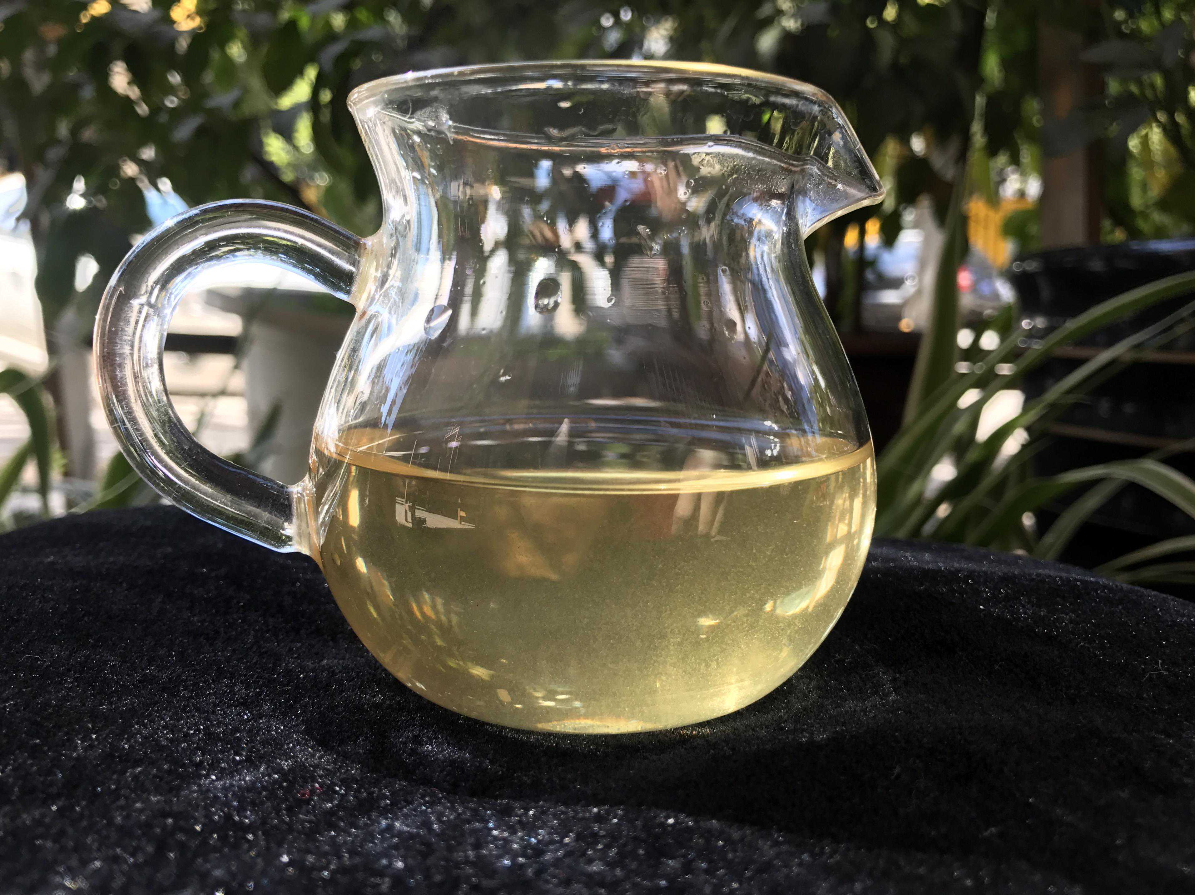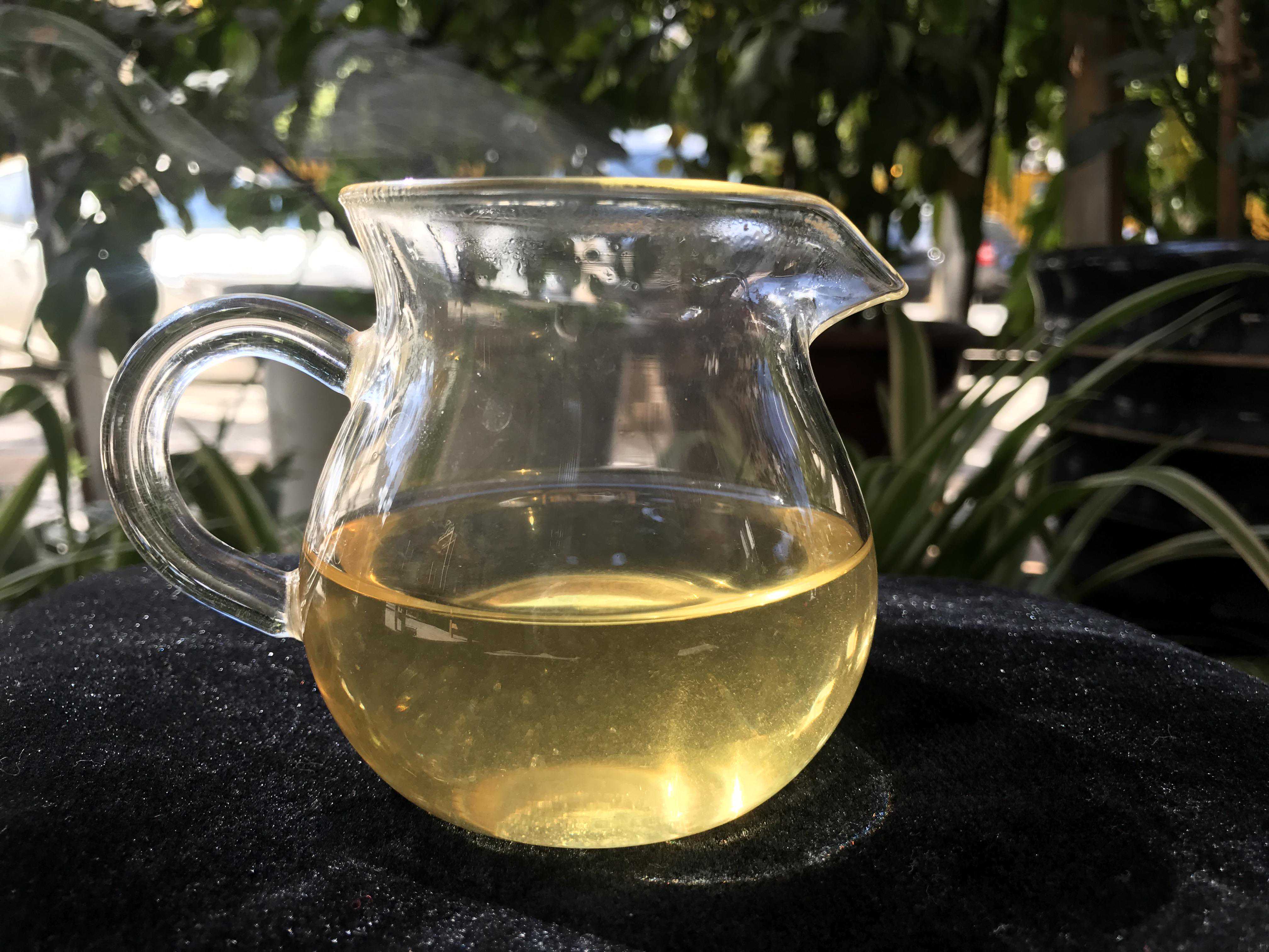 茶汤呈淡黄色,透亮度比较好。茶汤香及挂杯香都还可以,只是它的香有些奇怪,似乎是苹果放置时间太久发出的那种味道,与它本该有的茶香不太一样。