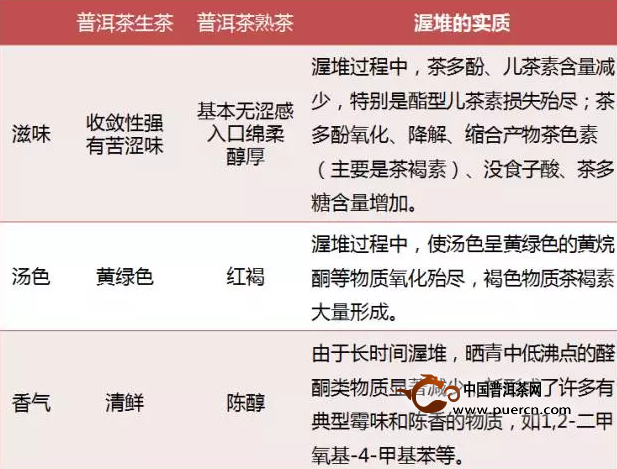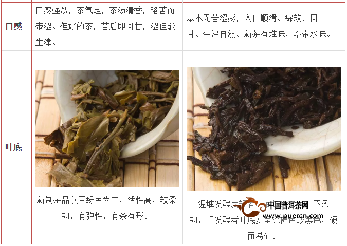 图4当年普洱生茶与普洱熟茶对比表