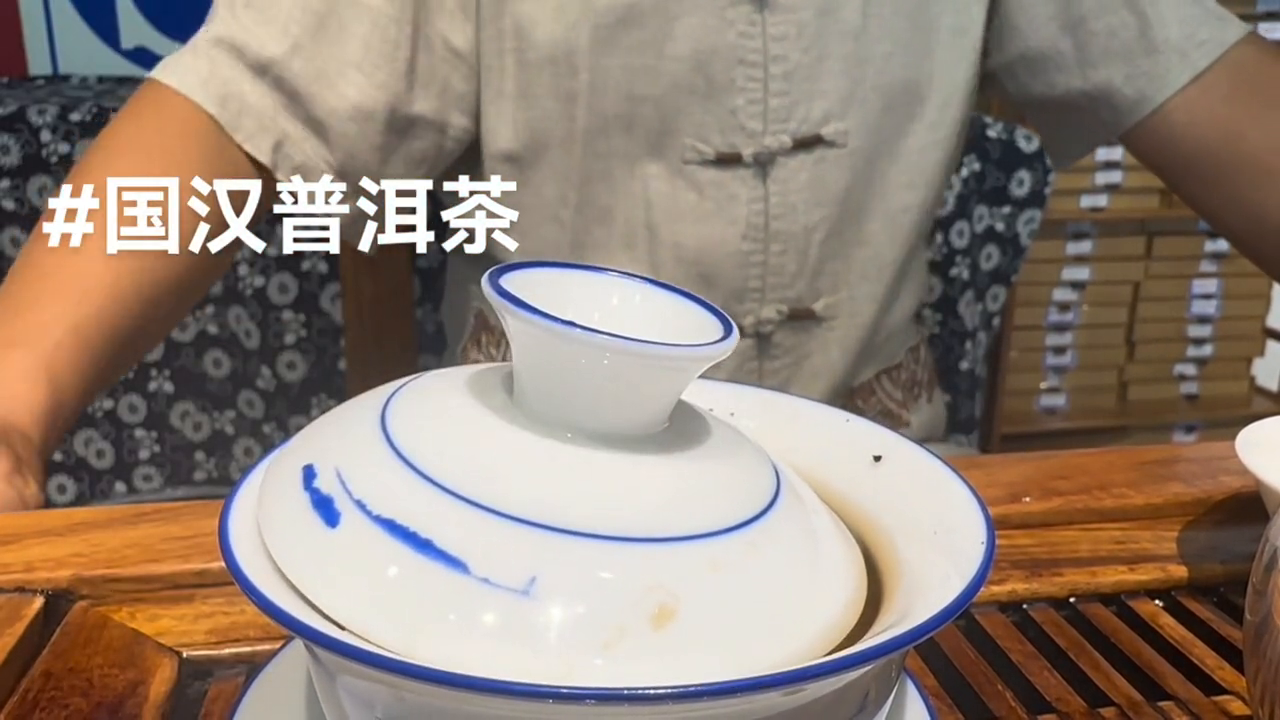 ·第二步是润茶,这是要唤醒国汉熟普洱的古树活力。润茶不易过满,八分为宜。把盖子盖上,让茶与水充分交融,15秒左右将茶汤倒出,茶汤可以用来温杯。