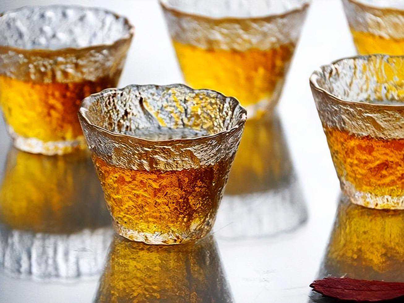 玻璃加热后很柔软,很容易可以塑造出各种不一样的造型,有一种锤目纹的玻璃茶具就很受欢迎。锤目纹,顾名思义就是在玻璃茶具的表面塑造出锤子打击过的纹饰,增加了玻璃的折射,改变光影的角度,赋予了茶具立体感,茶汤入杯之后会更亮,而且自带有禅意的气质,和茶文化的韵味相匹配。