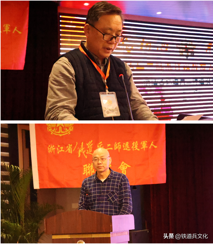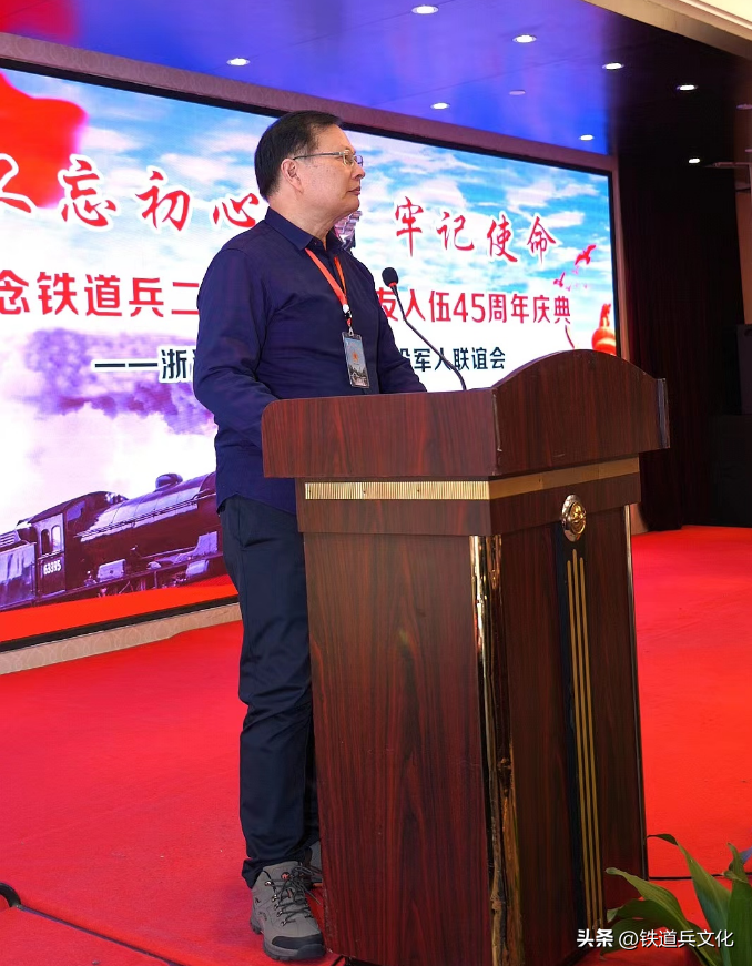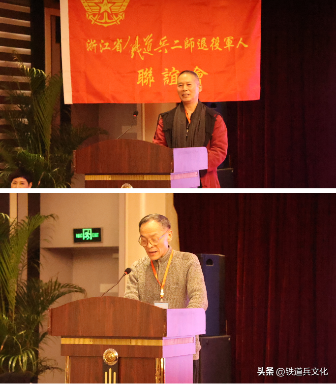 大会由浙江省铁二师退役军人联谊会秘书长张国松主持,在陈泽方战友的指挥下,我们齐声唱起雄壮的歌曲《铁道兵战士志在四方》。浙江省铁二师退役军人联谊会长陈伟南作了主旨讲话。他在致辞中指出:“45年前的今天,我们在渴望中换上了65式军装,怀着对人生的憧憬和希望,离别家人,告别父母亲友,在夜幕中登上军列,一路北山,奔赴那遥远苍凉而陌生的黄土高原,开启了无悔无言的军旅生涯。军营是我们抹不去的记忆:当年太原娄烦条件比较艰苦,我们曾经住过的泥巴筑起的营房,睡过十几个人在一起的集体通铺,吃过大米掺高粱米‘二米饭’,作息以军号为令,逢山开路,遇水架桥,用火热的青春,赢得了荣光,正是这段不寻常的经历,铸就了钢铁般的意志和铁道兵精神,同时战友之间结下了深厚的友谊和战友情……往事历历在目,却让人刻骨铭心,永志难忘。”他強调指出:“作为退役军人,我们初心如磐,永葆军人本色,祖国没有忘记我们。虽芳华已逝,但初心未改。下步工作:1.继续支持战友创业和事业发展。2.适时组织战友们赴太原原师部,北京中铁建铁道兵纪念馆,哈尔滨铁道兵启航纪念塔参观。3.继续大力支持各地、市、县战友会的工作。”