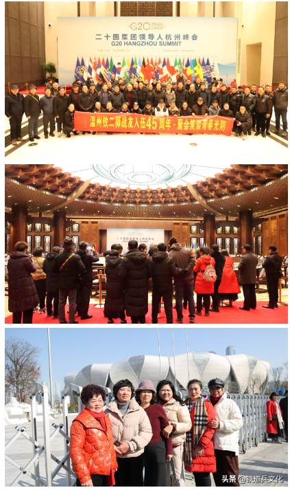 第二天,战友和军嫂们在酒店内用早餐之后,乘车前往游览钱江新城城市阳台,外观杭州市政府、杭州大剧院、杭州洲际饭店,在钱塘江畔感受杭州日新月异的变化,欣赏到两岸日月同辉景色。前往参观G20杭州峰会主会场奥体博览城,这是国际经济最高规格会议首次在中国举办,花落杭州,梦圆西湖。用中餐后,下午参观亚运村。2023年第19届亚运会在杭州举办。与此同时,外观亚运会主会场大莲花和小莲花等景观。参观结束后,大家进行了拍照留念。陈伟南、张国松、李伟群、薛建光、单冲等联谊会领导和温州、瑞安的战友和军嫂们互相道别,杭州行程也随之结束。