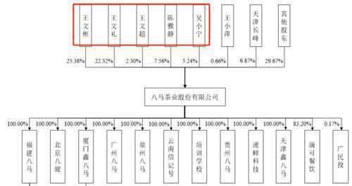 八马茶业成立于1997年,是一家全茶类全国连锁品牌企业。招股书的披露来看,公司虽注册在深圳,但实际控制人王文彬、王文礼、王文超、陈雅静及吴小宁,均来自茶文化盛行的福建泉州。其是典型的家族企业,前述股东与福建当地知名企业七匹狼、安踏、高力控股之间都存在联姻关系。