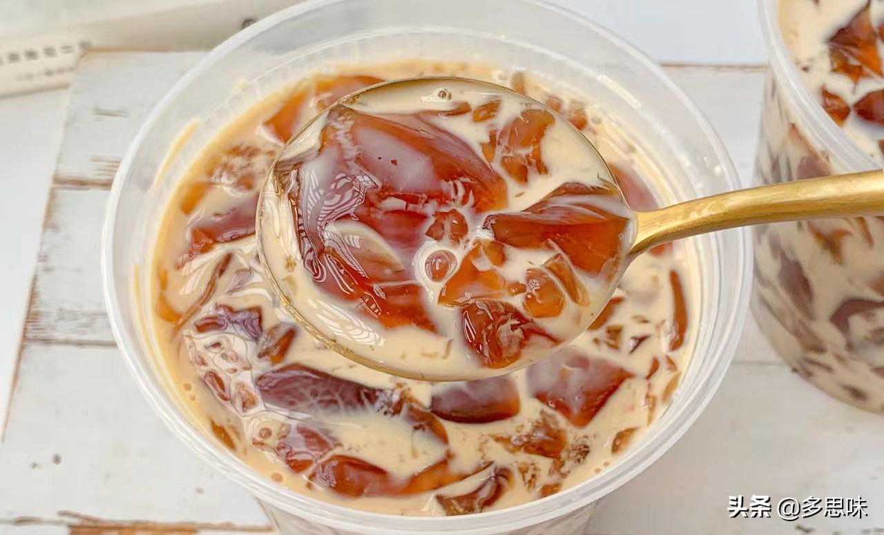 3、用勺子将茶冻碾碎,装适量到杯子中,倒入牛奶拌匀就可以吃啦❗️冷藏后口感更佳呀