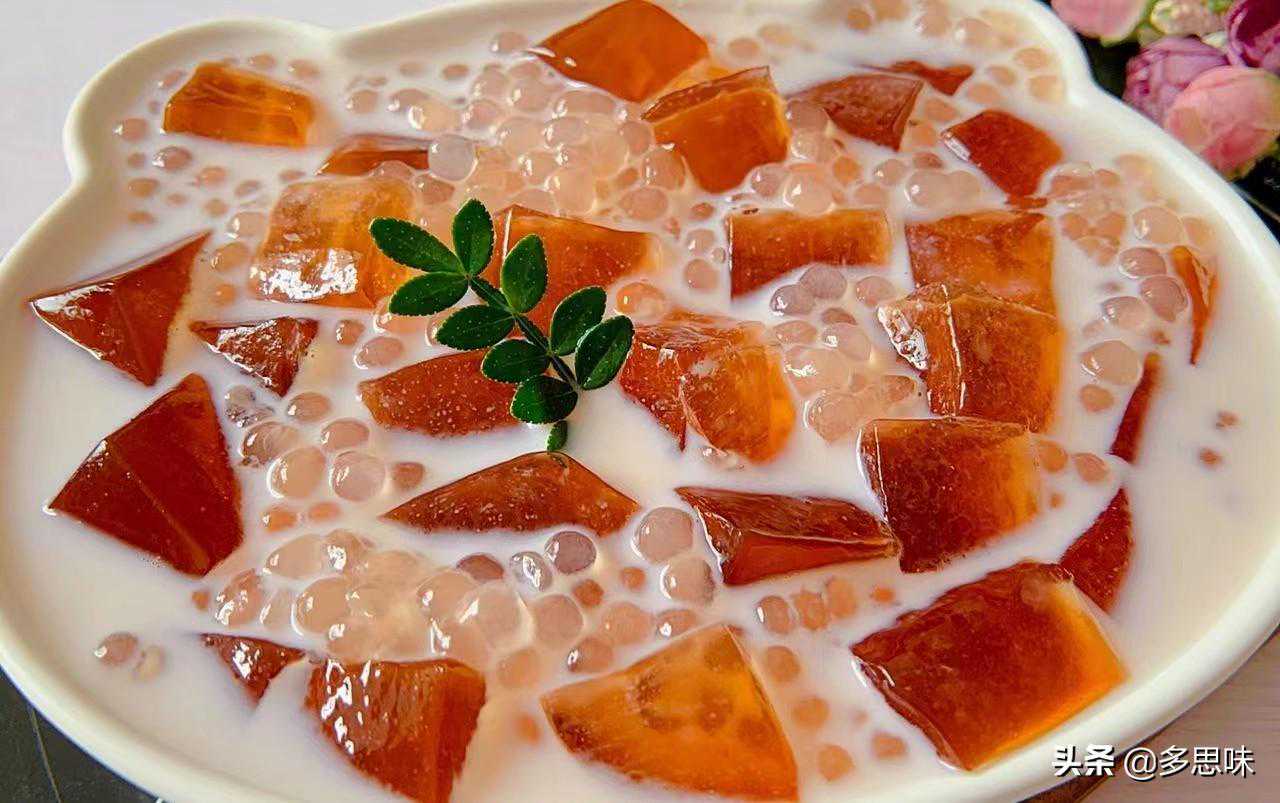 3.茶冻切小块,放西米和冷藏后的椰汁即可。