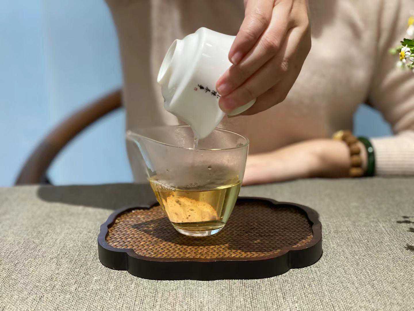不然,四、五人坐下来一起喝茶,每人面前都摆着容量近70毫升的大杯子,盖碗冲出来的一道茶汤没法分。