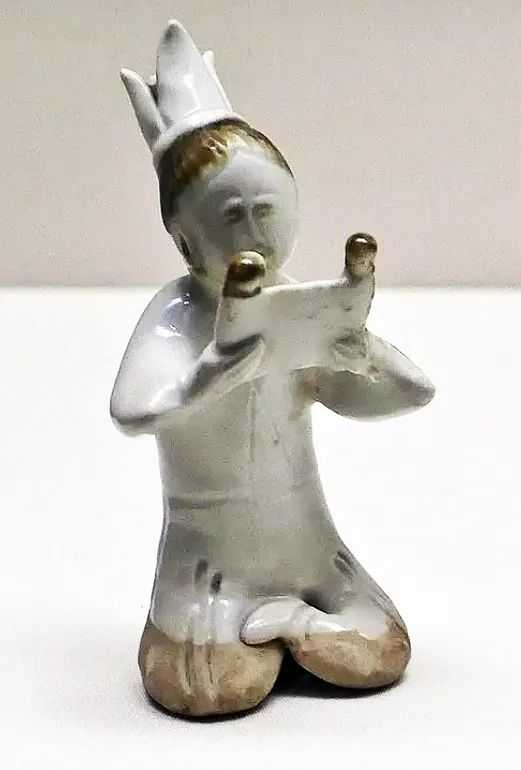 这套茶具多为唐代煎茶用品,有趣的是这件白瓷人像。人像是谁,为何会与茶具放在一起?学者们开始了推测。