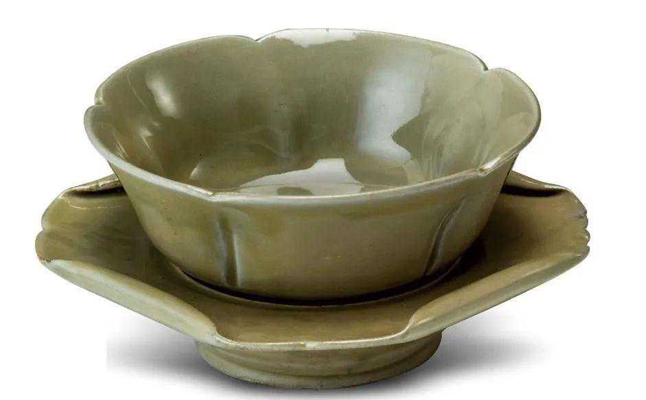越窑青釉荷叶带托茶盏