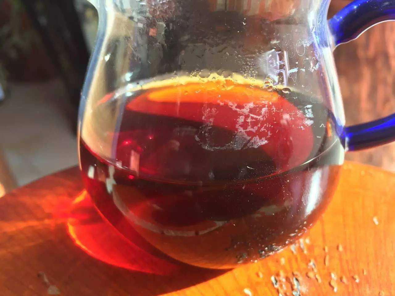 第3泡:出汤后汤色为亮红色,透明度很高,入口汤质浓稠,较滑,有压舌感,香气不飘,较沉,茶味饱满回甘好。