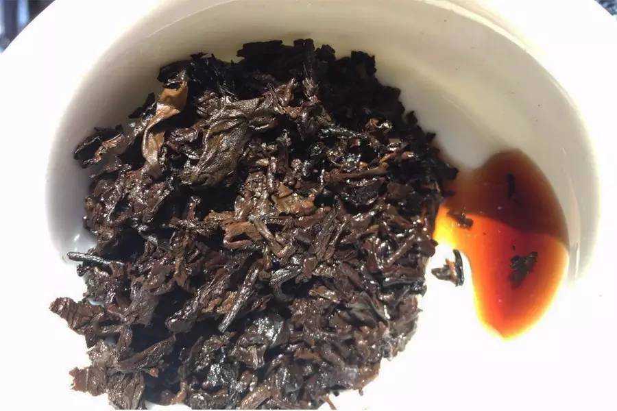 取7克茶入120ml的盖碗,冲入沸水(97℃),因为是紧压茶,头泡洗茶稍微的闷十多秒出汤,此时茶汤呈琥珀色、透亮、茶香四溢,闻杯底陈茶香较浓稍带一点蜜香。