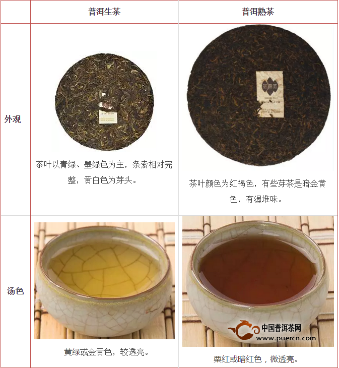 图4当年普洱生茶与普洱熟茶对比表