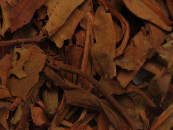 有年份的普洱生茶叶底呈栗色至深栗色,和台湾的东方美人茶叶底颜色很相似。叶条质地饱满柔软,充满新鲜感。