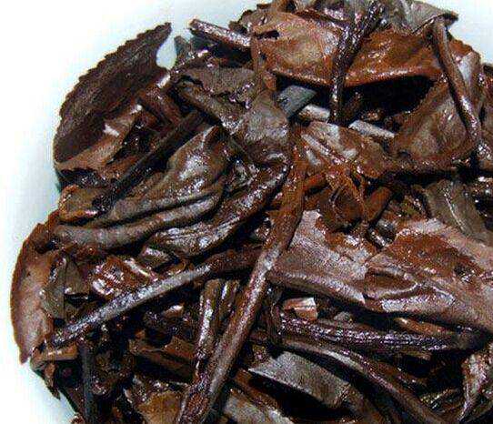 普洱熟茶的叶底多半呈现暗栗或黑色,叶条质地干瘦老硬。如果是发酵较重的,会有明显炭化,像被烈火烧烤过。
