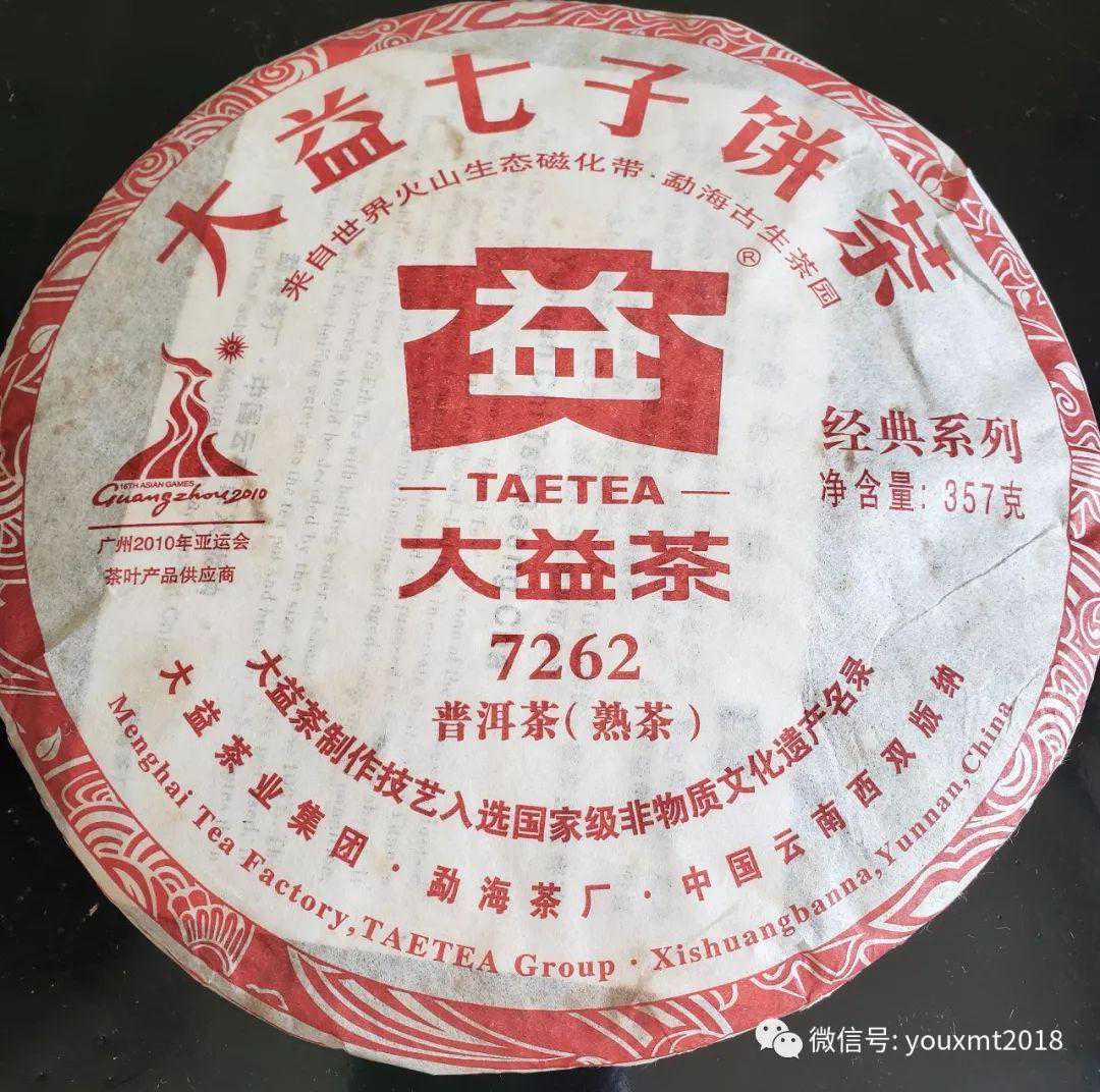 大益7262是1973年第一次面世,选用料嫩,口感浓,是勐海厂的顶级熟饼;金芽撒面,里茶等级为3-7级,65%-70%的发酵,口感滑润,香气纯,回甘生津快,汤汁为红亮色,被誉为勐海厂的顶级熟饼。