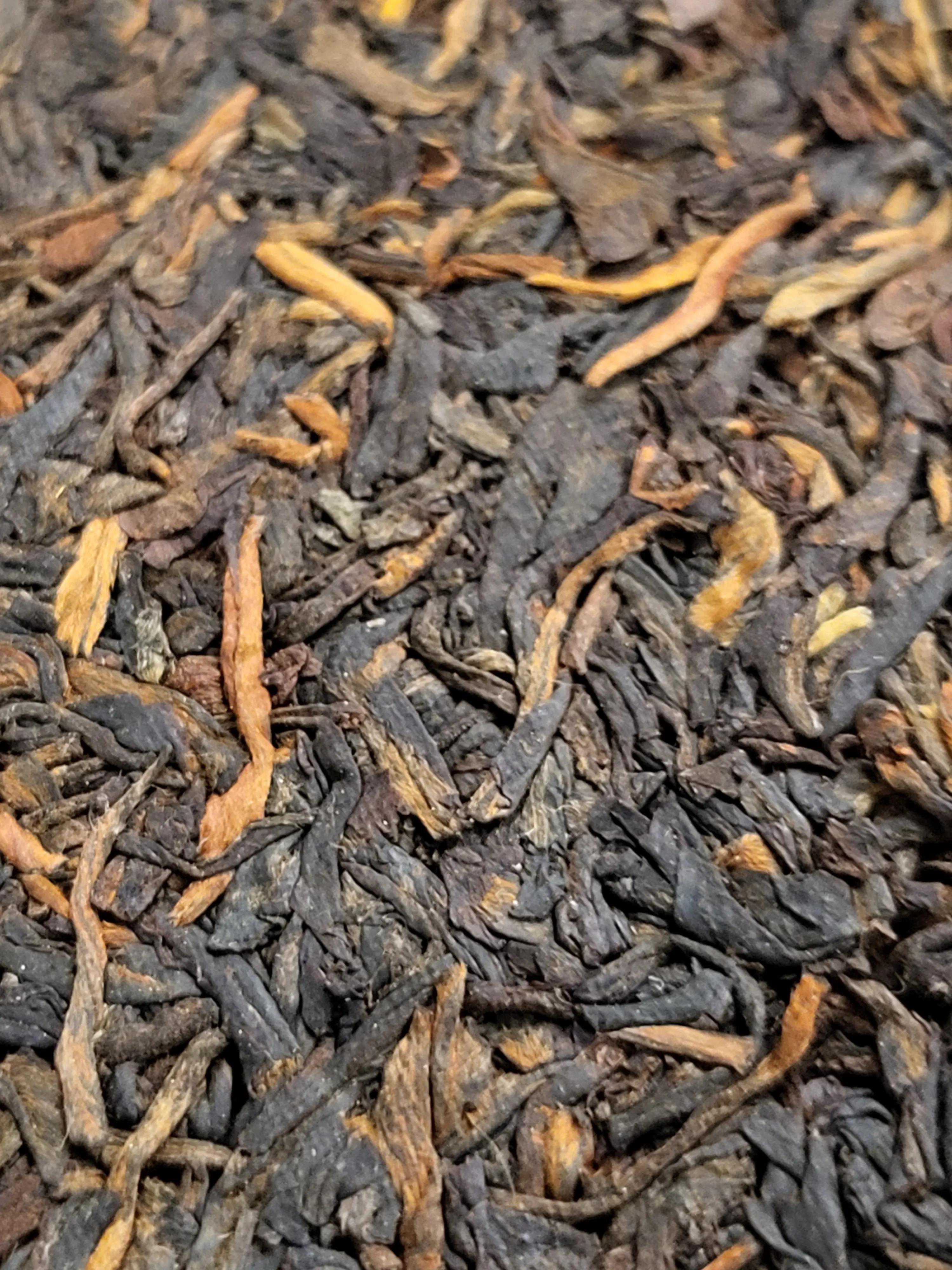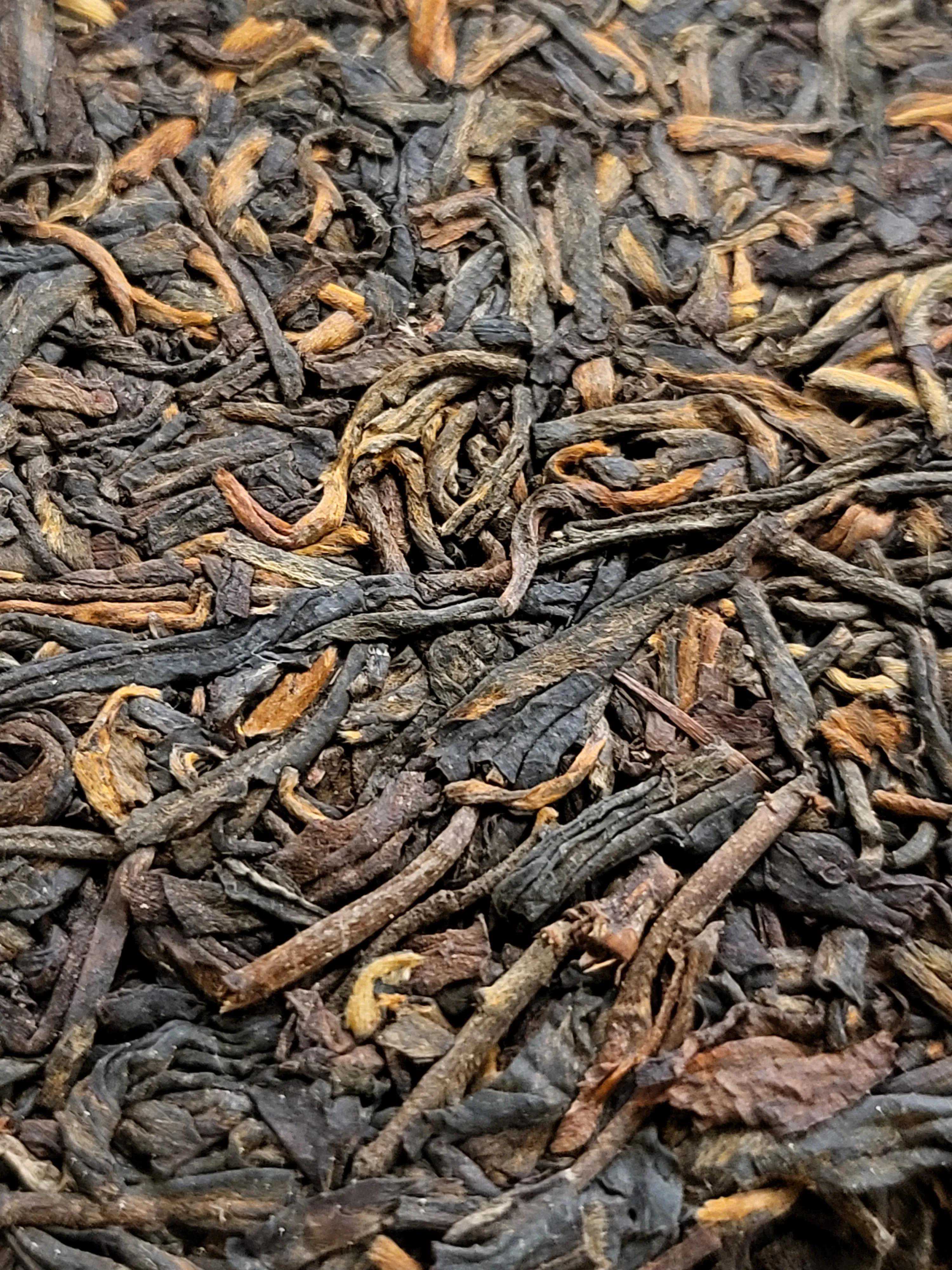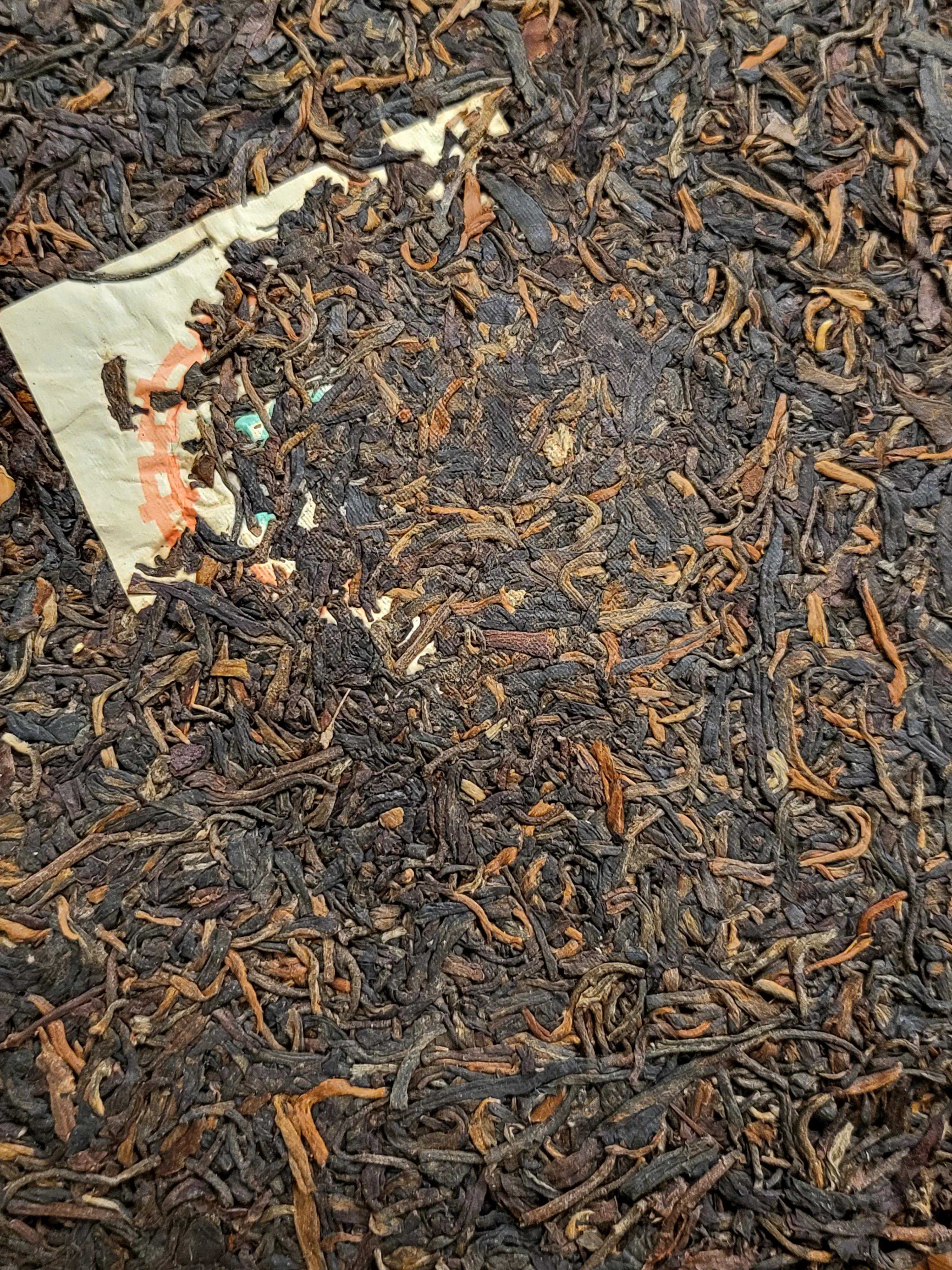 茶饼茶条乌黑油润,毫芽部分经年累月转化为金色,正所谓金毫毕现。茶条肥硕粗状,间中茶骨嵌在饼中,体现国营厂时代拼配茶品的突出特点。通过高清大图,饼面的布纹清晰可见,这也是勐海茶厂那个时代的茶品特点。同时提醒爱茶人注意国营厂时代内飞的压制是深埋入茶的,这个特点通常用于同期茶品的作假厂家和作假年份的反推证据。本文不再引用常规茶书的图片,敬请谅解。
