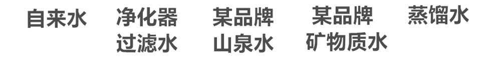 自来水、净水器净化水、品牌矿泉水2款、蒸馏水