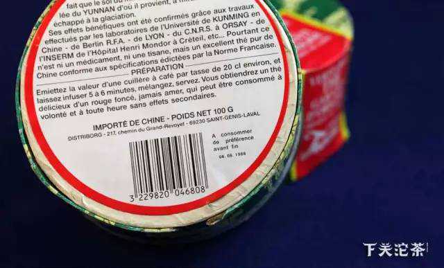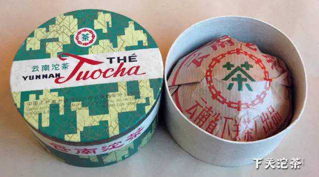 自此云南下关茶厂生产的云南沱茶(熟茶)进入了法国市场,茶人称呼的“销法沱”由此而得名,黄绿色花格印刷的圆盒包装,包装上法语的“THÉ”(茶),花体的“Tuocha”字样都是销法沱的标志性特征,三十多年来这样的视觉识别标志从未改变。下关茶厂至今也仍在生产这样包装的云南沱茶,生产工艺从未改变。