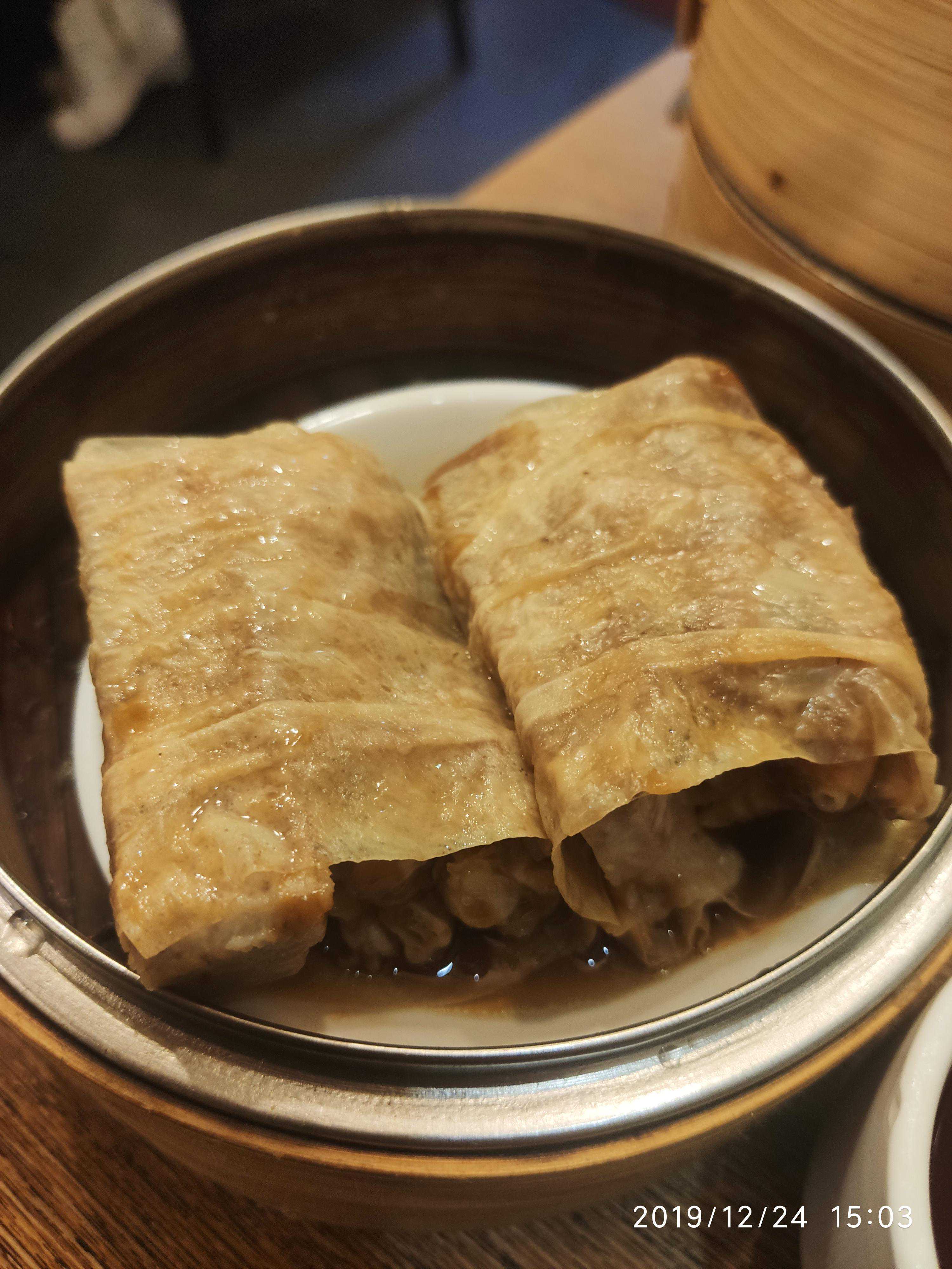 鲜虾腐皮卷:腐皮酥脆,里面裹着虾仁和芹菜,新鲜出炉的不错,冷了就不好吃了。