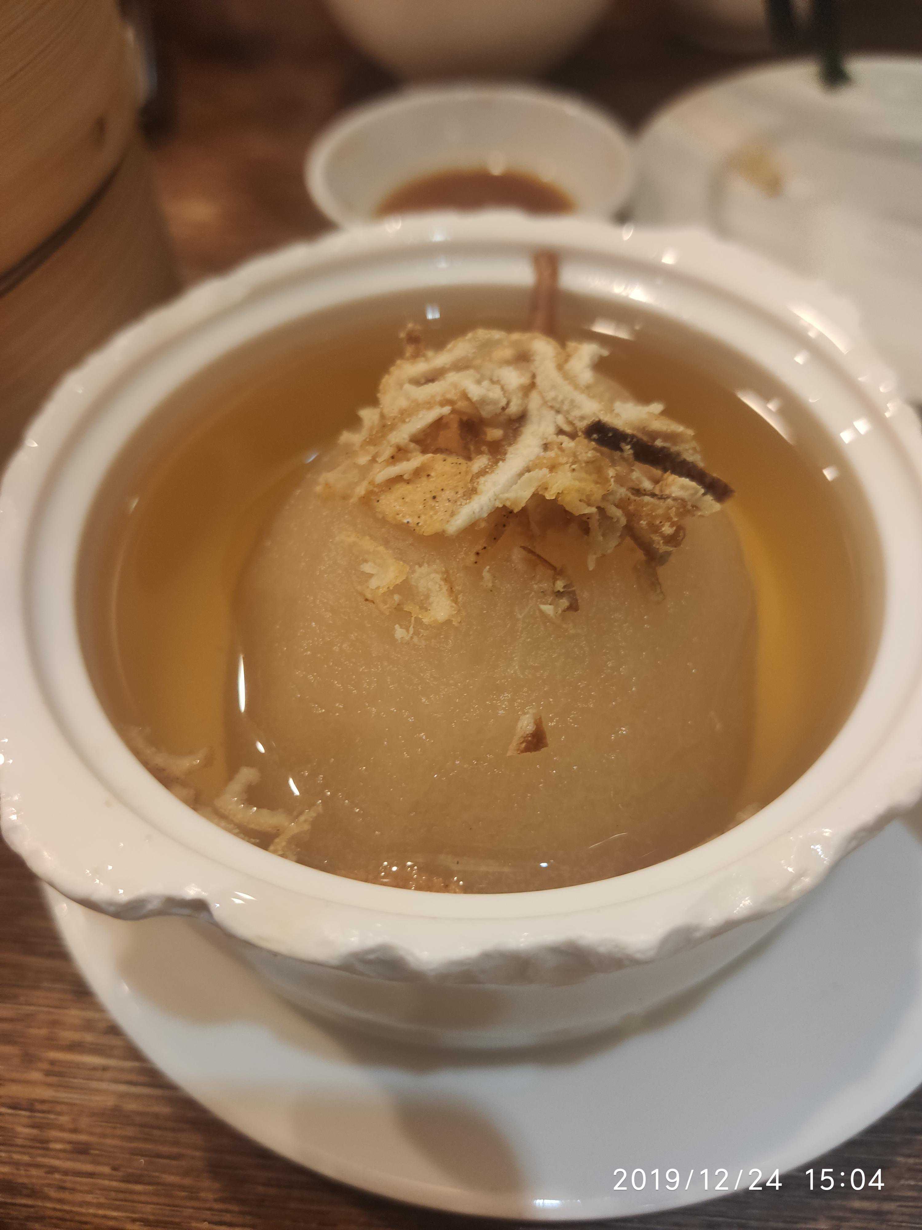 冰糖雪梨:这个可以,雪梨配上蜂蜜,上面撒了一些陈皮。应该是润肺清燥、止咳化痰。口味相当不错。回家后可以在家里炖一盅试试。除了火候以外应该不是很难掌握的吧。