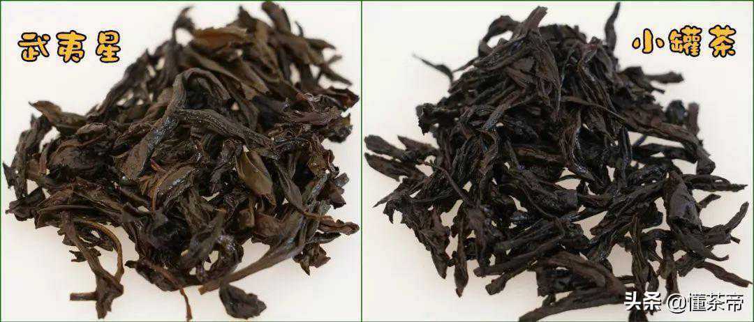 武夷星的这一款大红袍,条索紧接壮实、色泽乌黑带褐;而小罐茶的这一款条索更为粗壮一些。