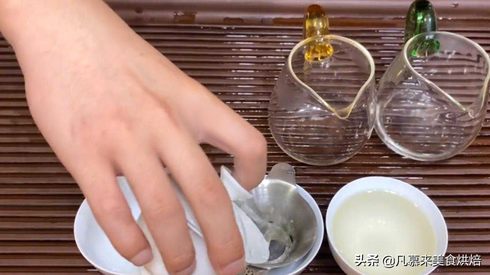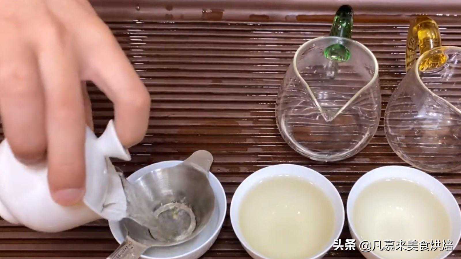 6.同样的流程泡第二泡,温度比第一泡高2-3度就可以,闷3秒钟左右,出水要快速一点,倒入杯子里即可。