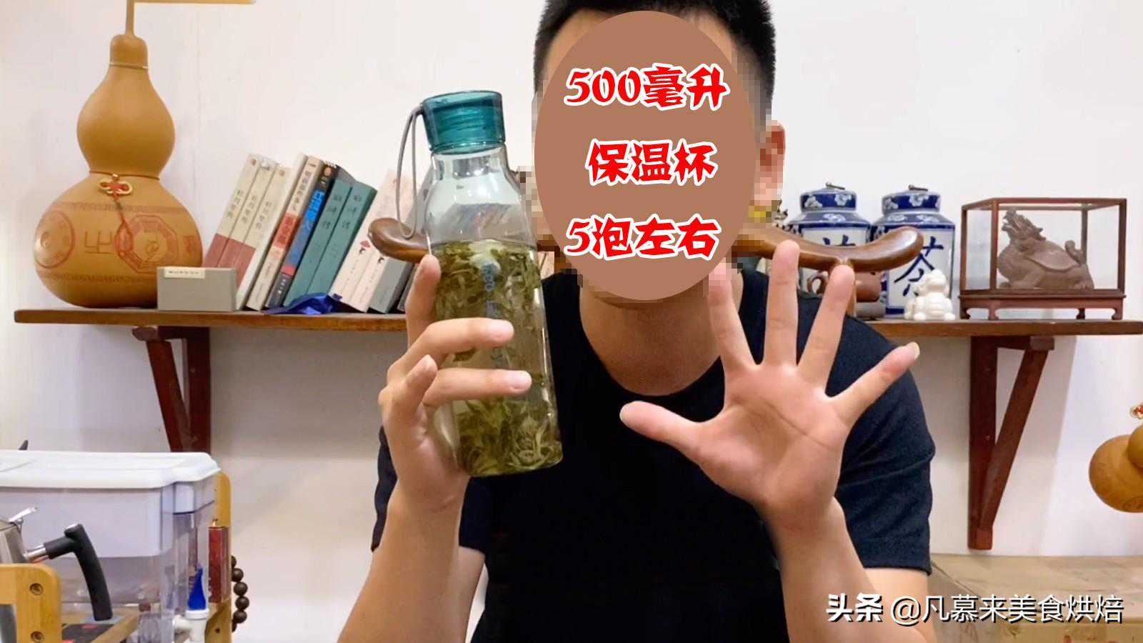 4.保温杯泡茶:第一泡80度洗茶,差不多闷5-8秒左右,倒掉不喝;第二泡70-80度左右的水,第三泡80-90度的水泡,基本上能泡5泡,以手摸上去手能握住保温杯的温度即可。