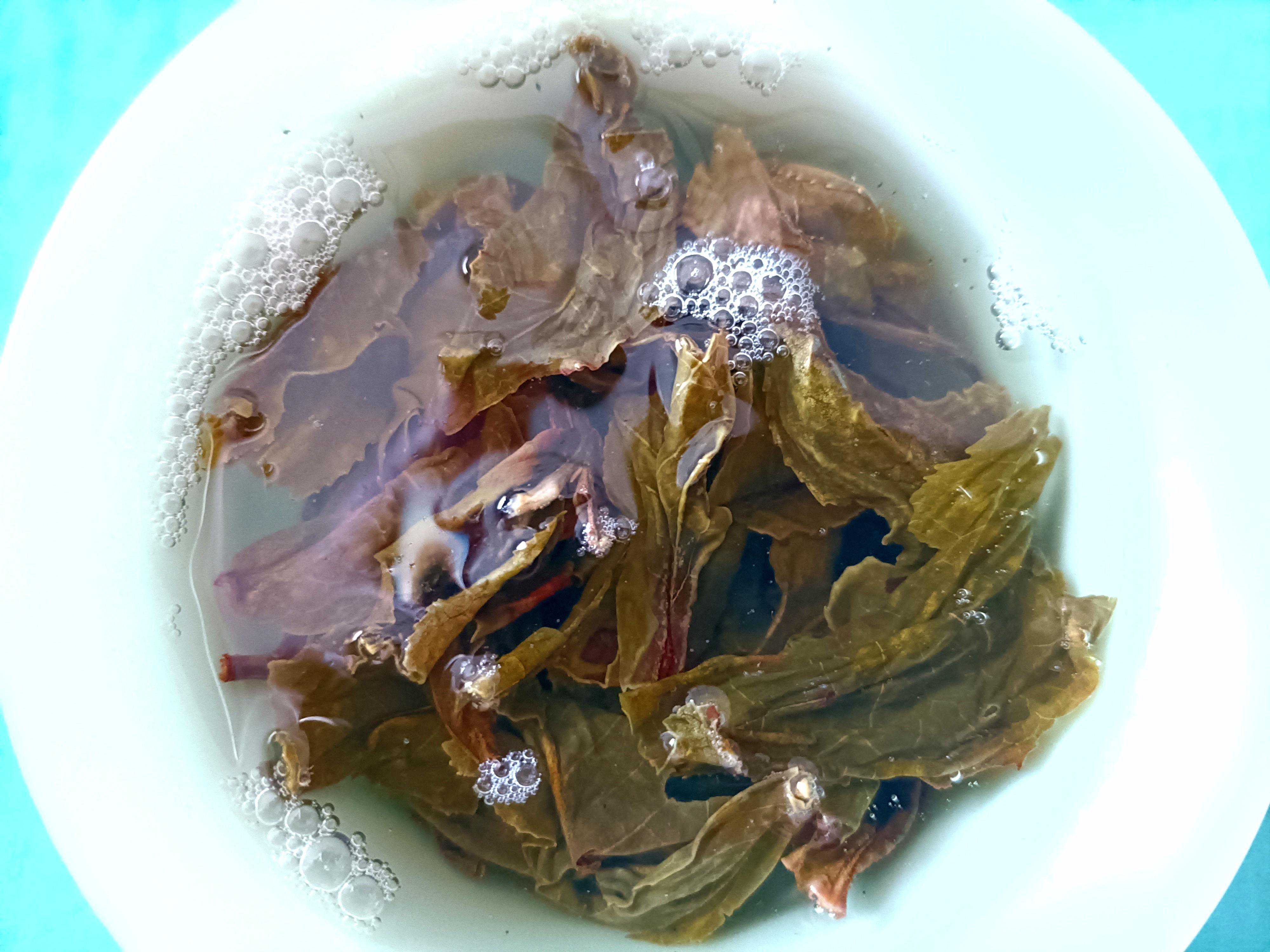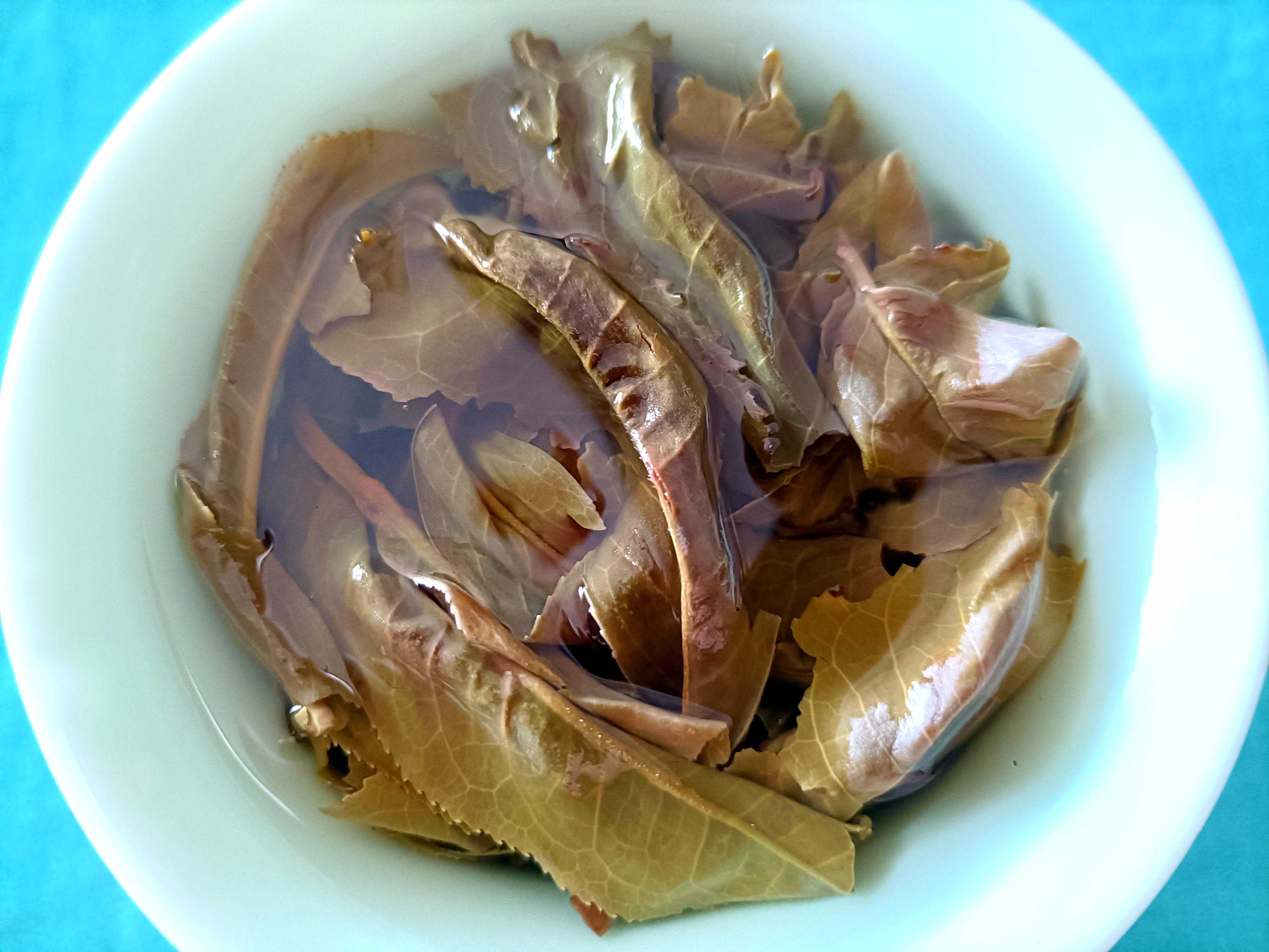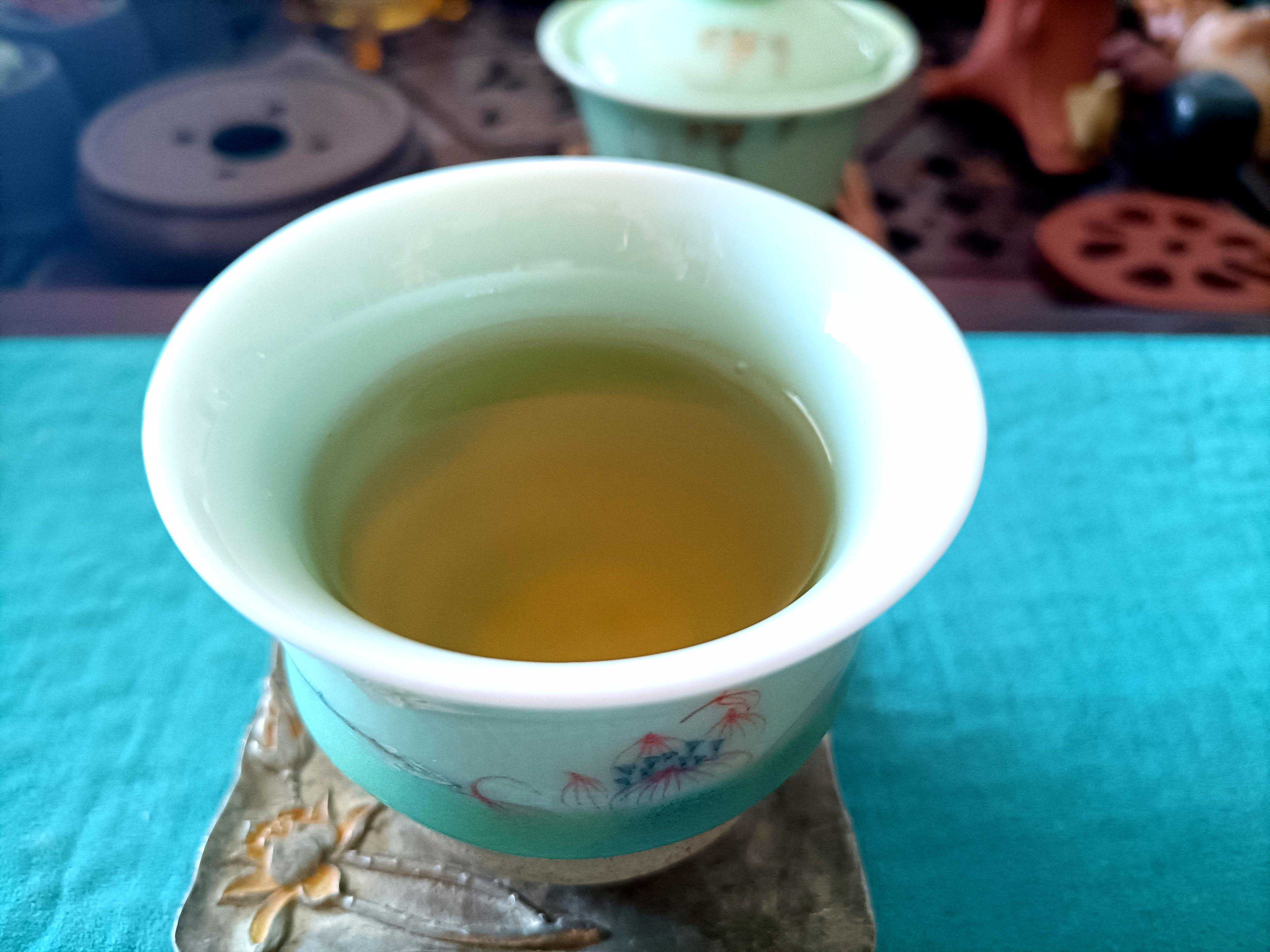 冲泡后,茶汤汤色金黄明亮,特别是到3泡时,条索充分地伸展开来,茶气得到进一步的释放,山野气韵喷发而出,苦感较突显,回甘平缓持久,从舌面到两颊生津。