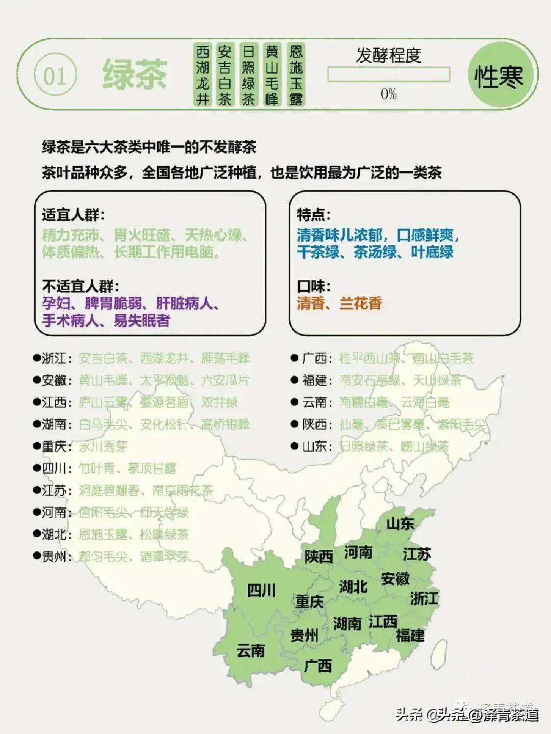 全国各地广泛种植绿茶是中国人饮用最广泛的一种茶类,产地非常广,全国的东南西北各省市,几乎没有不产绿茶的地方。除了我们耳熟能详的名优绿茶——西湖龙井、黄山毛峰、碧螺春等,很多小地方也会出产绿茶,但知名度比较低,一般都是自产自销。