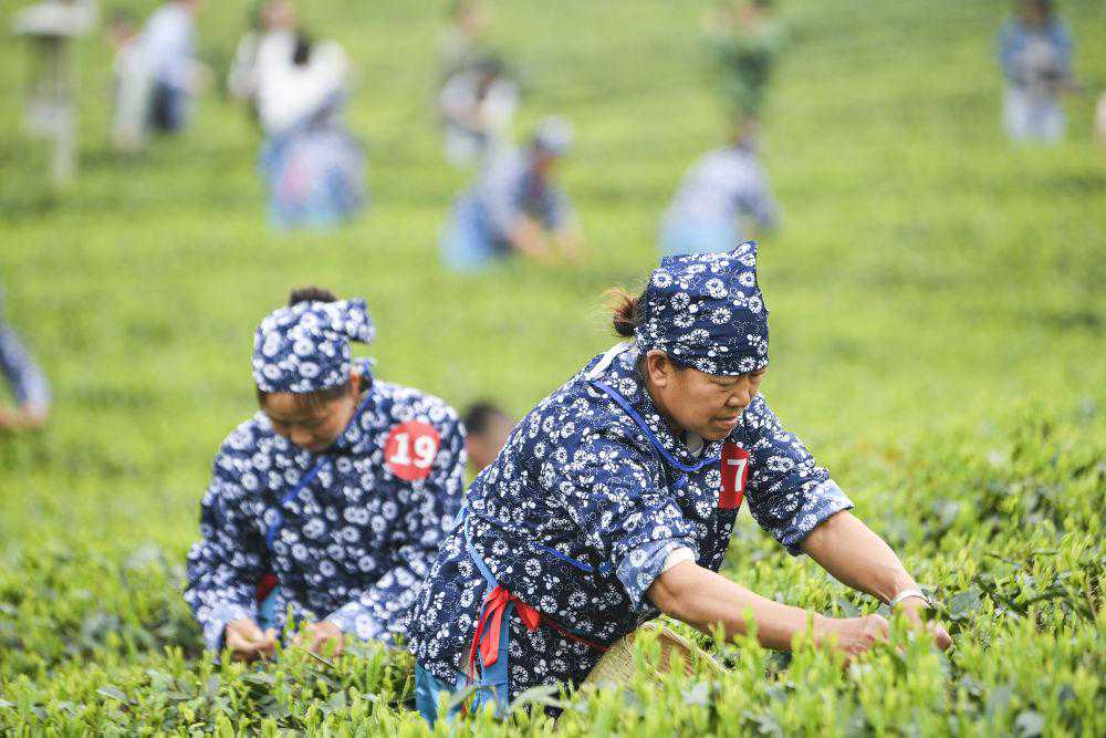 4月2日,第二届“永川秀芽杯”川渝合作泸永江产业带采茶大赛上,选手在重庆市永川区永荣镇白云寺村乡村振兴就业园茶叶采摘区采茶。新华社记者王全超摄