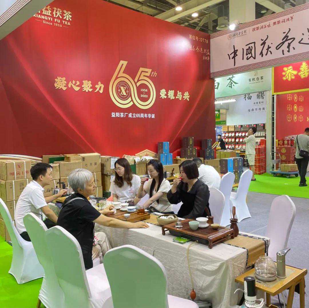 湘益茯茶展位前来品茗的茶友络绎不绝,湘益茯茶以纯正的“金花”、醇和的口感、正宗的工艺,让前来品饮的茶友折服于杯中浓浓的“湘益味”。