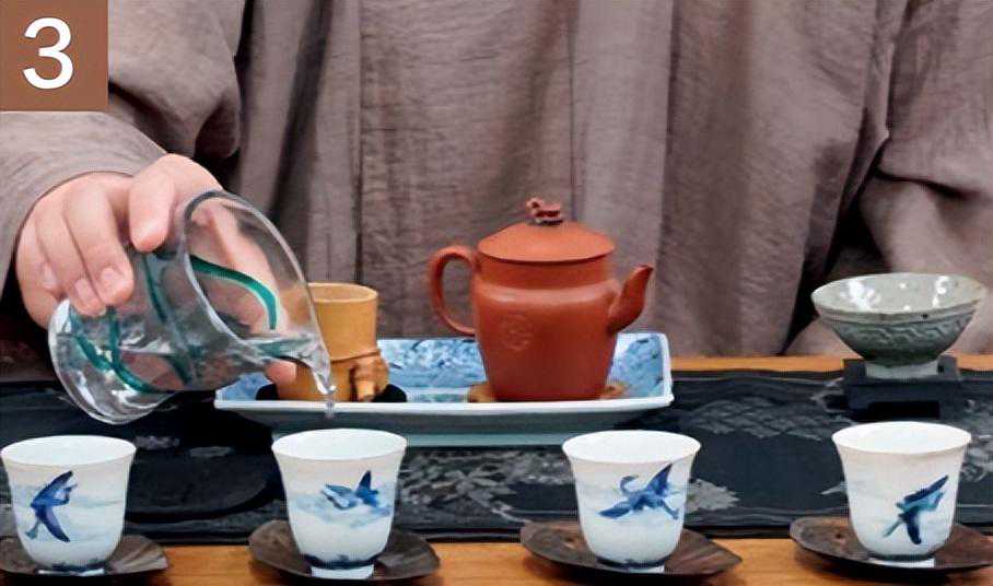 笔者也主张,当有客人时,茶器应该预先完成了清洁,然而此时,也应该做一些表示洁净的动作。比如,用开水冲烫泡茶器,倒掉水之后,用白色的茶巾将其擦干。有的时候也会将水倒入公道杯和茶盏里,再倒掉,以此提高器物的温度。有些茶人对此表示异议:既然你要重新冲烫,只能证明你的茶器不干净。其实,这没有直接的、必然的联系。做一些清洁的动作,实际是让自己和客人都有一个缓冲和进入的过程,理想化为“擦去心之污垢”。这样人就会从认真甚至虔诚的清洁动作里,更好地进入到即将泡茶、感受茶的氛围里。