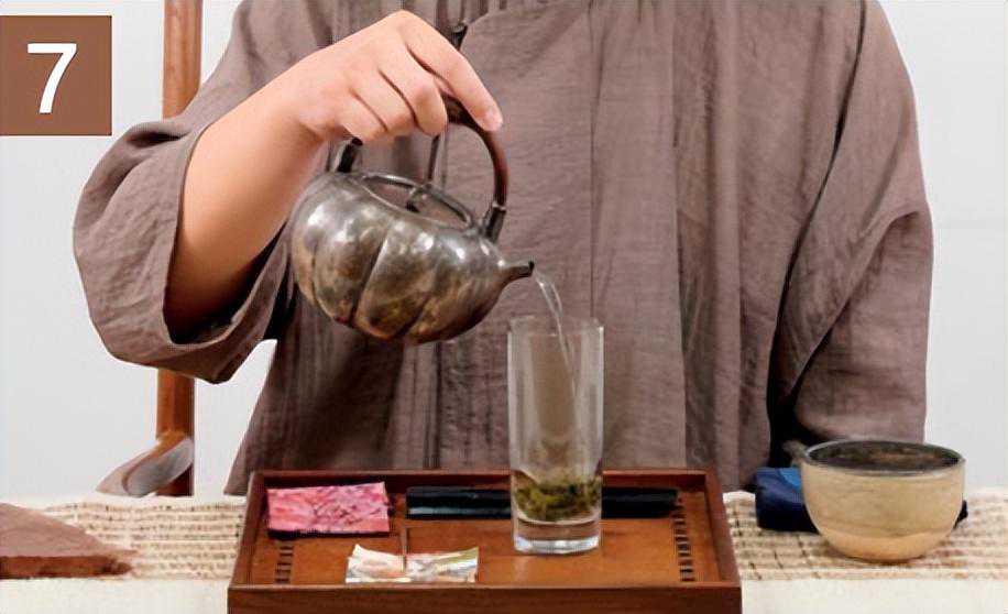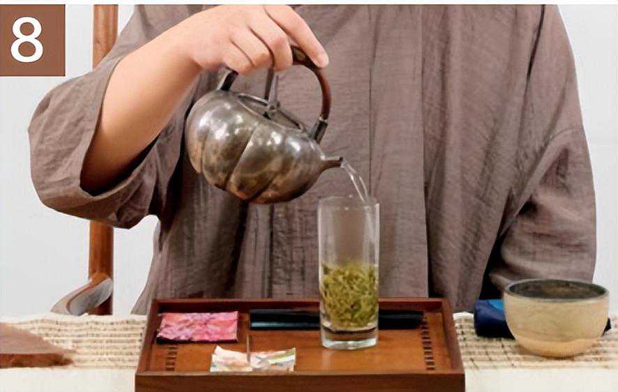 这个总原则是:得到茶汤浸泡出的有效物质,而在色香味上饮料化。大体的步骤是:1.煮水(水为茶之母);2.备器(器为茶之父);3.赏茶;4.置茶;5.温润泡(可以不用);6.冲泡(不同茶类次数不同);7.品饮;8.观察叶底。总之,基本的泡茶因素是:置茶量、水温、浸泡时间,其他的诸如手法等都是配合而来的。