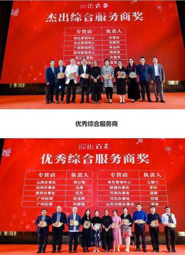 更明显的是,据澜沧古茶去年11月在官微发的文章,澜沧古茶当月举行了团拜会。文中杰出综合服务商奖和优秀综合服务商奖的名单上,又出现了上文提及的营销中心以及负责人的名字,如朱仙舟、邓斌(如下图)。