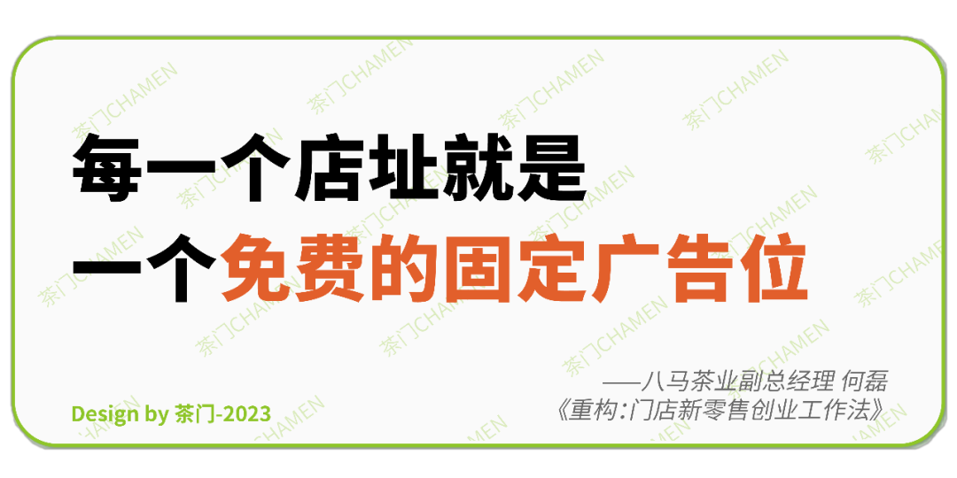 同时在营销策略板块中,作为早期互联网基建不健全,有且只有“线下渠道”占领一途的传统茶企而言,有如何磊在《重构》一书中所说的那样,“每一个店址就是一个免费的固定广告位,这也是为什么沃尔玛、家乐福、八马茶业、海澜之家、喜茶等不需要大规模投入广告营销的原因。”