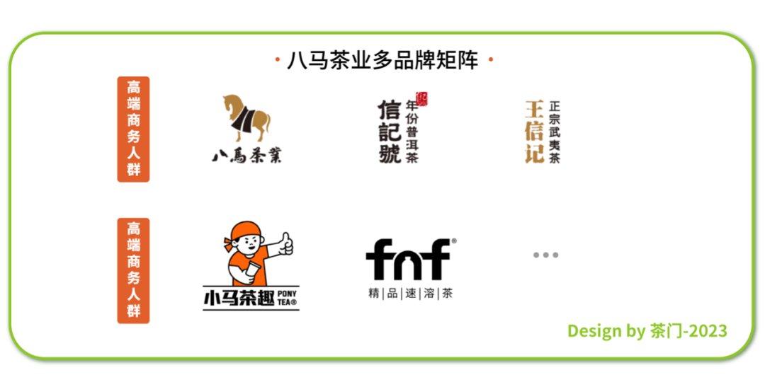 它的多品牌战略中,在主要针对高端商务人群的原叶茶板块,除了全茶类的八马,还以年份普洱茶、正宗武夷茶,分别开辟了信记号和王信记品牌。但在年轻群体的培育上,八马不再是借助原叶茶,而是借助“小马茶趣”茶饮,及速溶原萃茶饮“fnf”品牌,走上了茶饮和茶饮料的探索道路。