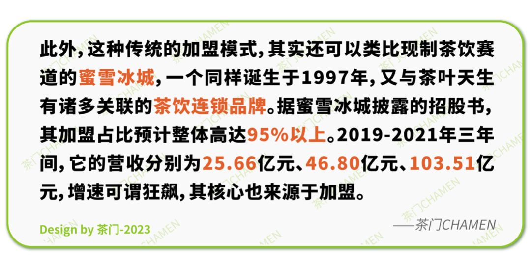 就现实层面而言,加盟,的确是实现快速拓张的发展利器,不亚于茶品牌的创富“印钞机”。但还要注意的是,在原叶茶这个特殊的赛道上,这种“加盟”模式,对茶品牌的价值不止于“渠道”,还有深深的体验价值、人文价值和客户培育价值。它最新开辟的线上渠道,本质也是与线下形成优势互补的。