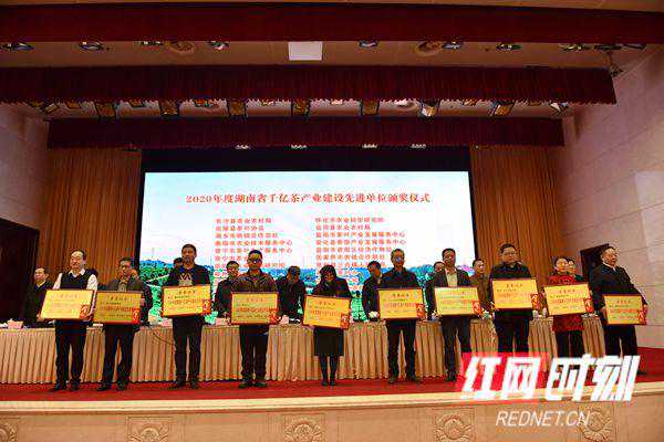 荣获“2020年度湖南千亿茶产业建设先进单位”代表上台领奖。