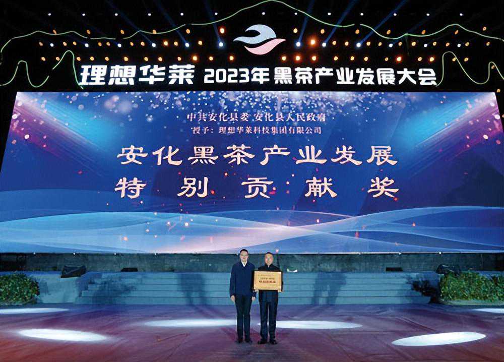 大会现场,安化县委书记石录明为理想华莱科技集团有限公司(以下简称“理想华莱”)颁发“安化县黑茶产业发展特别贡献奖”。