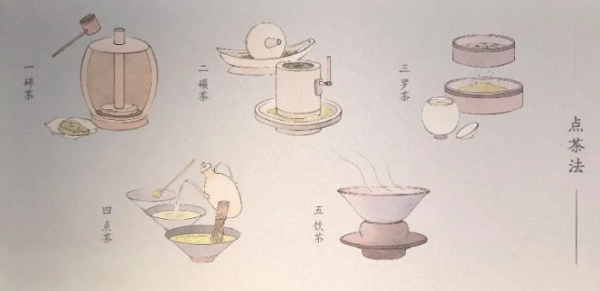 出现于晚唐,流行于宋元时期的点茶法步骤示意图