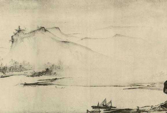 董源善画,尤工秋岚远景,多写江南真山,不为奇峭之笔。其后建业僧巨然祖述源法,大体源及巨然画笔,皆宜远观。其用笔甚草草,近视之几不类物象,远观则景物粲然,幽情远思,如睹异境。如源画《落照图》,近视无功;远观村落杳然深远,悉是晚景,远峰之顶宛有反照之色,此妙处也。