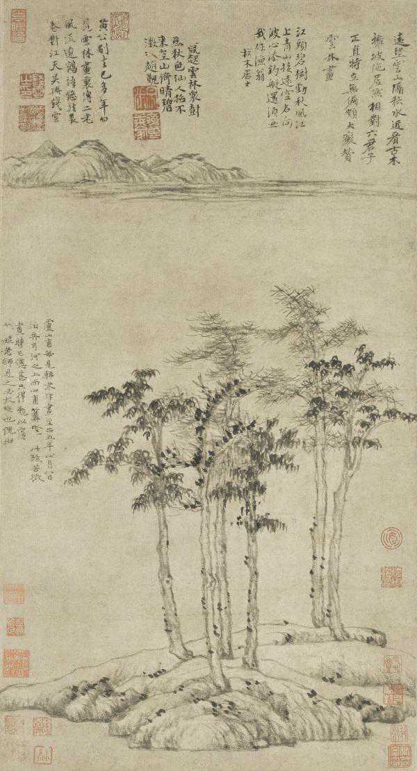 图4.[元]倪瓒《六君子图》轴,纸本水墨,64.3×46.6cm,1345年,上海博物馆藏
