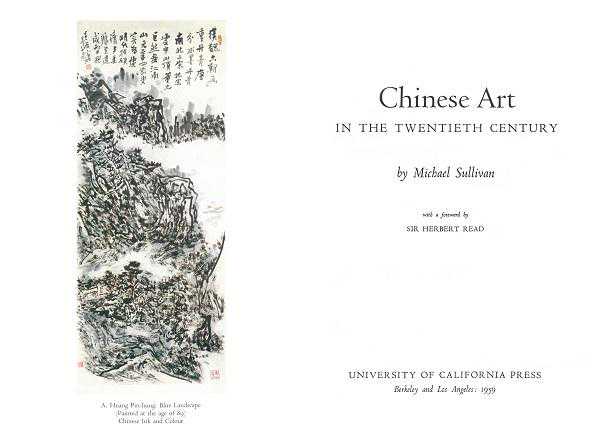 图5.[英]苏立文《二十世纪中国美术》,伯克利:加州大学出版社,1959年,扉页彩图,黄宾虹《拟笔山水》,1952年,新加坡百虹楼陈景昭藏