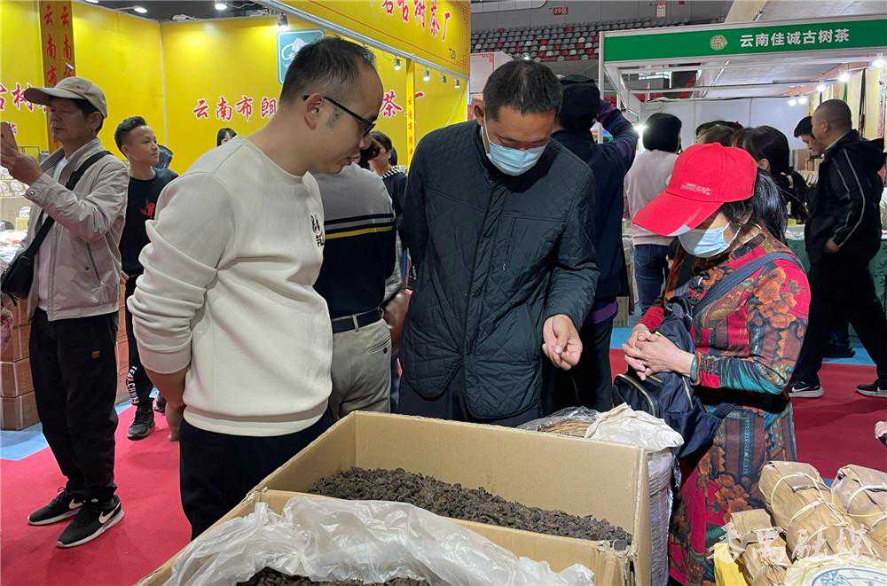上午10点,番禺茶博会在一片热闹欢腾的舞狮表演中拉开序幕。本届展馆面积约4800平方米,设茶叶、茶具、茶食品、茶家具4个展区、共220个展位。记者看到,现场不少参展商都使出浑身解数,拿出了“家底”经典老茶,不仅有云南普洱、福鼎白茶、安化黑茶、安溪铁观音、英红九号、潮州单丛等名优茶品,还有各类新式茶饮,整个展馆内都飘荡着浓浓的茶香。“我们是来自西双版纳勐海的‘普洱源’。我们从第一届番禺茶博会开始参展,一直到现在,已经连续参加了十届。这次特意带来了勐海之味普洱茶、老树茶、古树茶、老树金芽等产品,还有很多健康产品。”现场一位参展商说。