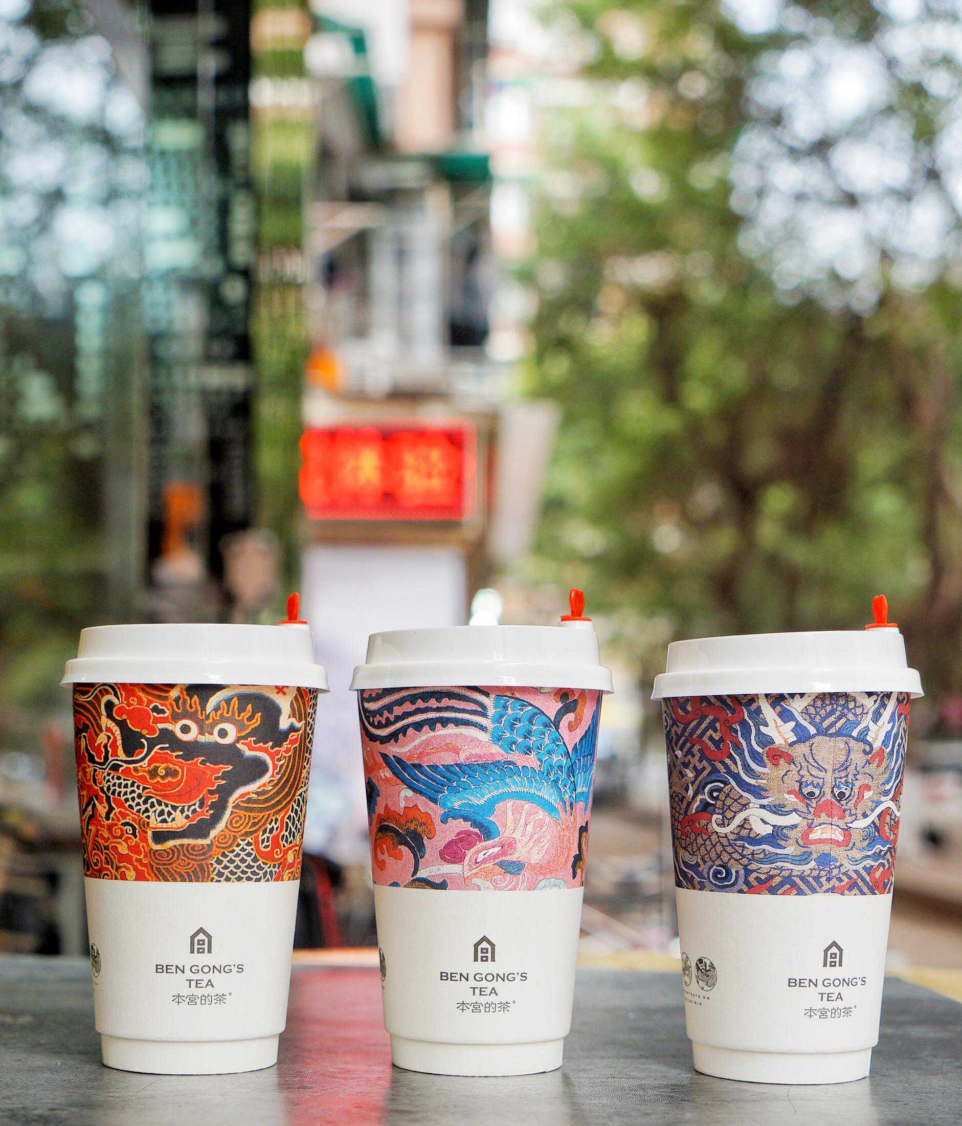 同步升级的还有热饮杯,用同系列图案,一杯三款,龙杯、凤杯、麒麟杯,物美颜高的中国风可以随时打包带走。